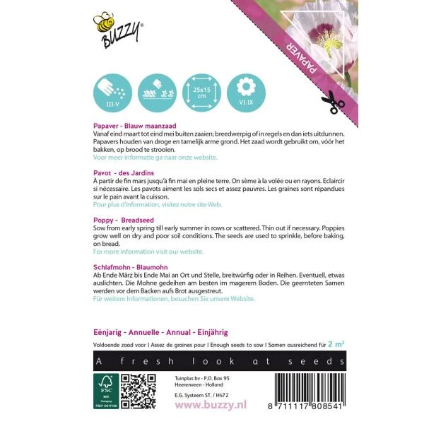 Blauwmaanzaad zaaien in de tuin met de hoogwaardige zaden van Buzzy Seeds.