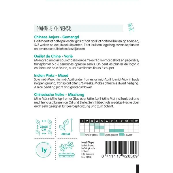 Dianthus chinensis bloeit met ongewone gefranjerde bloemen. Ze bestaan in wit, roze en lilaroze. Zet men ze in pot dan moet men wel zorgen voor een goede drainage.