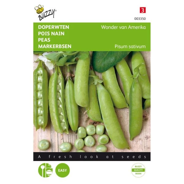 Kan zonder gaas worden opgekweekt. Gekreuktzadig ras, zeer zoet van smaak. De hoogte is ca. 40 cm. Een donkergroene lage erwt met een hoge opbrengst en een goede smaak. Deze middelvroege erwt met gedeukt groen zaad is prima geschikt voor de diepvries en het best geschikt voor een éénmalige pluk.