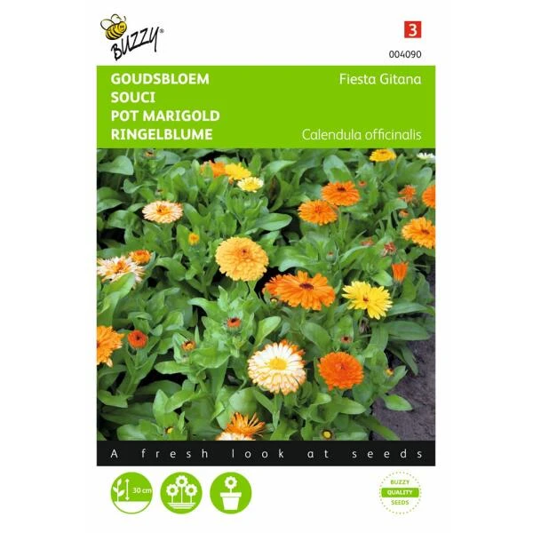 Goudsbloem Fiesta Gitana is makkelijk zelf te kweken en stelt weinig eisen aan de bodem. De geel/oranje bloemen bloeien weelderig en langdurig en kunnen ook gebruikt worden als snijbloem.