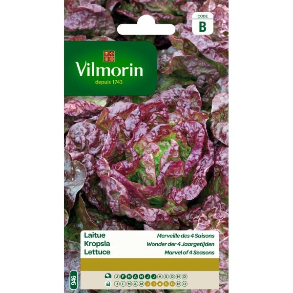 Zeer sterke variëteit die zware kroppen vormt met uitgesproken rood gerande bladeren. Sla bevat vitamines (A, B, C en PP), mineralen (fosfor, magnesium en ijzer) en sporenelementen.